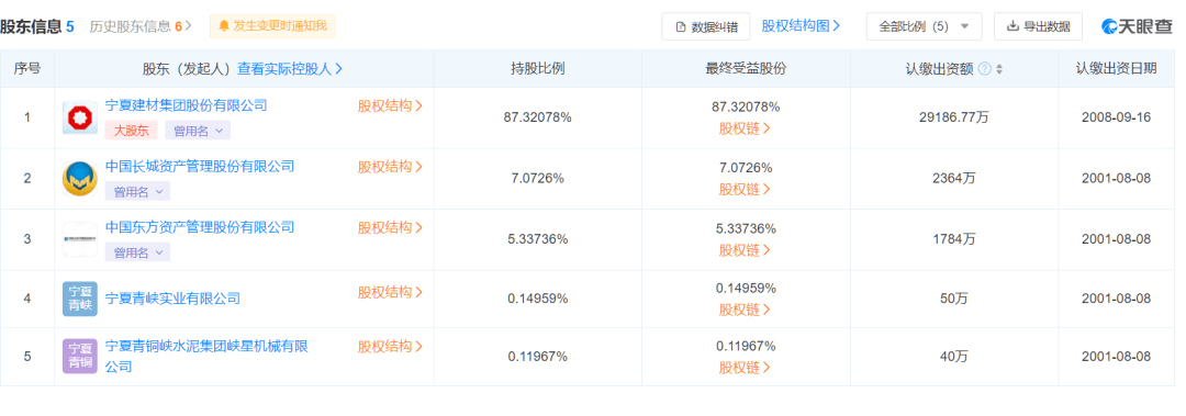 愛企查數(shù)據(jù)顯示,寧夏青銅峽水泥股份有限公司大股東為中國建材集團(tuán)下 屬寧夏建材集團(tuán)股份有限公司。