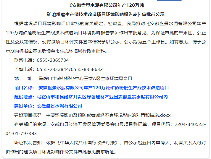 安徽盤景水泥有限公司環(huán)境違法一案,我局立案調(diào)查后,依法進行審查,現(xiàn)已審查終結(jié)。