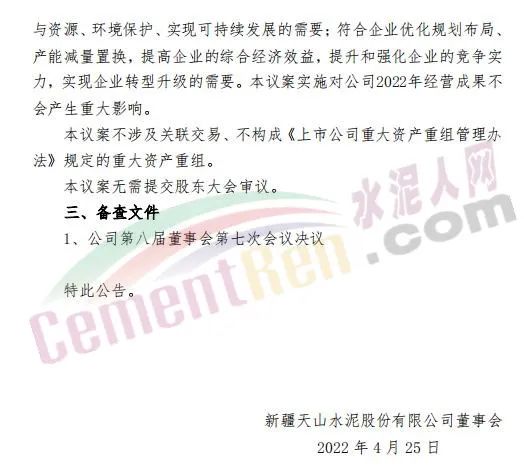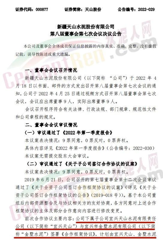 4月25日天山股份發(fā)布第八屆董事會(huì)第七次會(huì)議決議公告,審議通過(guò)了《關(guān)于子公司簽訂合作協(xié)議的議案》。