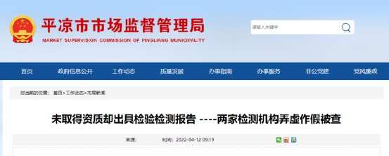 甘肅省平?jīng)鍪惺袌?chǎng)監(jiān)管局消息,兩家檢測(cè)機(jī)構(gòu)未取得資質(zhì)卻出具檢驗(yàn)檢測(cè)報(bào)告被查。