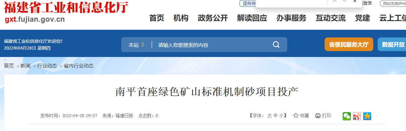 近日,在南平市建陽區(qū)麻沙鎮(zhèn),井窠建筑用凝灰?guī)r(機制砂)項目通過驗收并投產(chǎn)。該項目是南平第一座按照綠色礦山標(biāo)準(zhǔn)執(zhí)行設(shè)計、建設(shè)的機制砂生產(chǎn)項目,預(yù)計年產(chǎn)碎石、機制砂150萬噸。