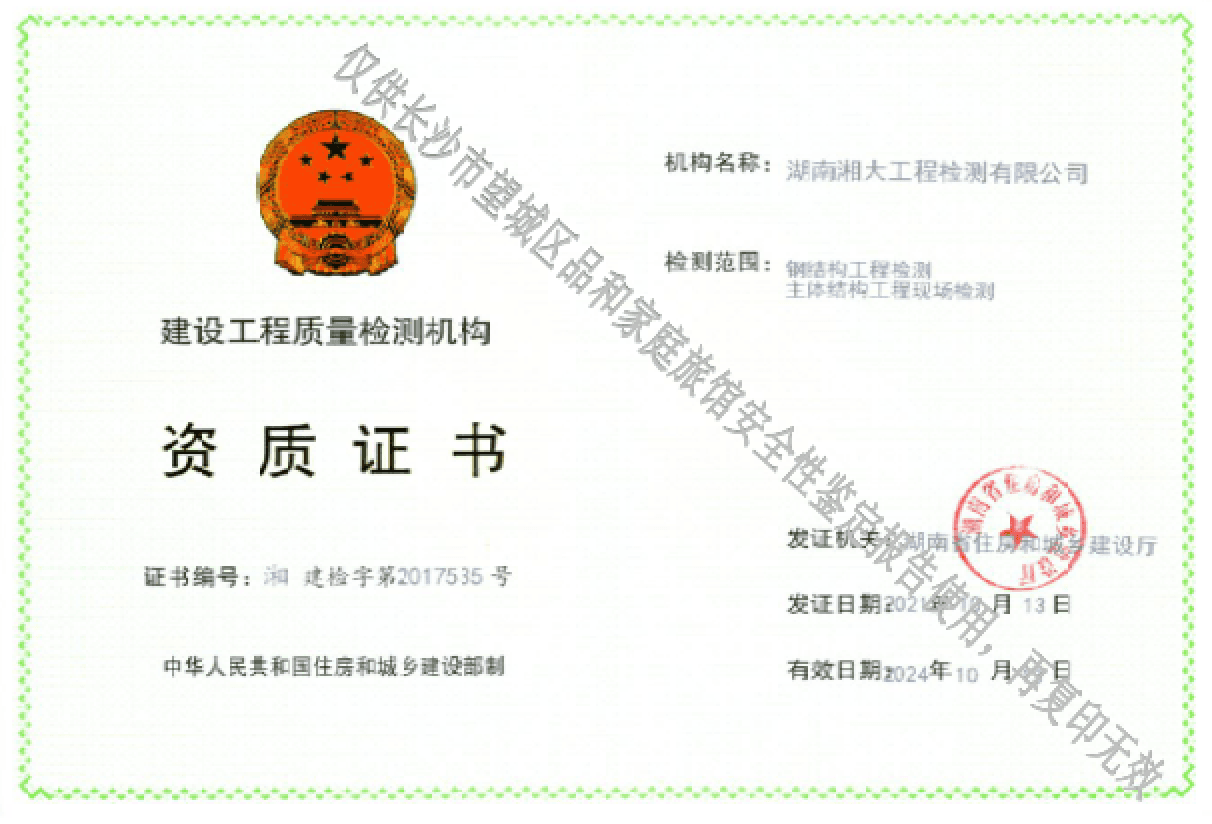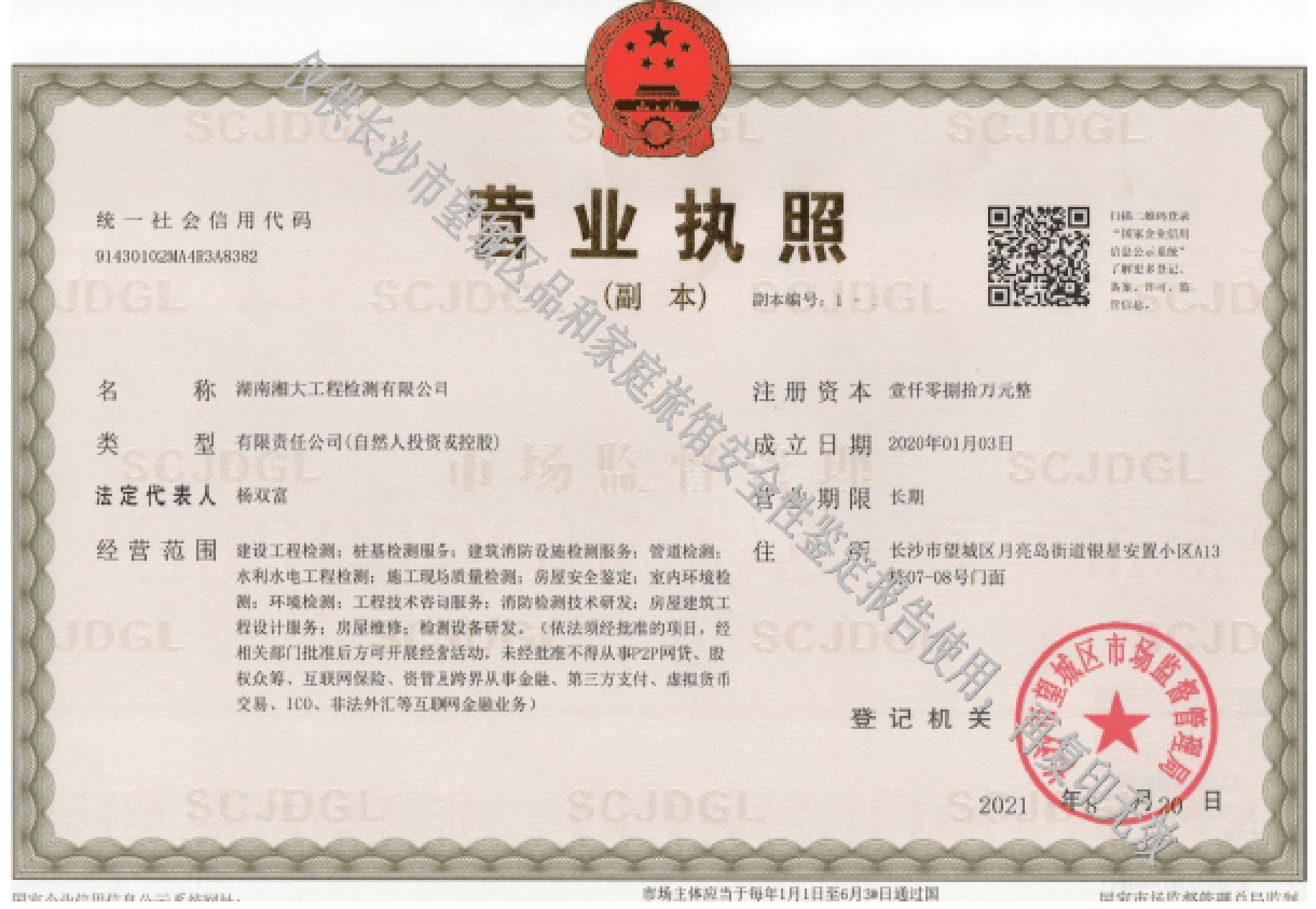 經(jīng)查,2022年4月13日,湖南湘大工程檢測有限公司(法人代表:譚某,公司性質(zhì):私營,注冊地:望城區(qū)月亮島街道)對該自建房家庭旅館(4、5、6樓)進(jìn)行房屋安全鑒定后出具虛假房屋安全鑒定報(bào)告,公司法人代表譚某及技術(shù)人員寧某、湯某、劉某、龔某等5人涉嫌提供虛假證明文件罪。