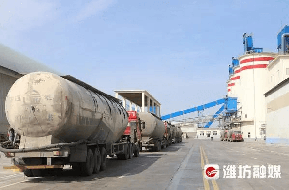 昌樂山水水泥有限公司院內(nèi)等待運(yùn)輸水泥的車輛。