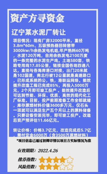 近兩年來(lái)多有企業(yè)和相關(guān)機(jī)構(gòu)通過(guò)市場(chǎng)交易平臺(tái)掛牌出讓生產(chǎn)線及相關(guān)設(shè)備資產(chǎn)等。北京產(chǎn)權(quán)交易所、 甘肅省產(chǎn)權(quán)交易所以及廈門(mén)產(chǎn)權(quán)交易中心信息顯示,近期金隅冀東 、祁連山水泥等多家水泥企業(yè)均有發(fā)布相關(guān)轉(zhuǎn)讓信息。