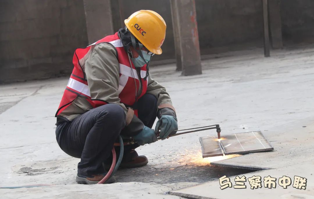 9:00熟料車間制作四線立磨下料溜子補(bǔ)焊工作