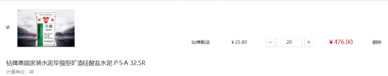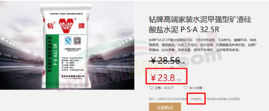 20袋P.S.A32.5R水泥合計476元,照此計算一噸P.S.A32.5水泥報價為595元。一經(jīng)銷商表示,現(xiàn)在大家都習(xí)慣了這種“減肥水泥”。部分裝修施工人員鉆空子以“20包一噸”計算。水泥合格,但是消費者支付的材料單價卻“上漲”了。施工所需要的水泥也有可能增加了。原來用一噸水泥可以完成的施工,現(xiàn)在至少多五包才夠。這中間如有偷工減料發(fā)生,極有可能危及建筑物的安全,或出現(xiàn)配比不合格導(dǎo)致的“豆腐渣工程”。