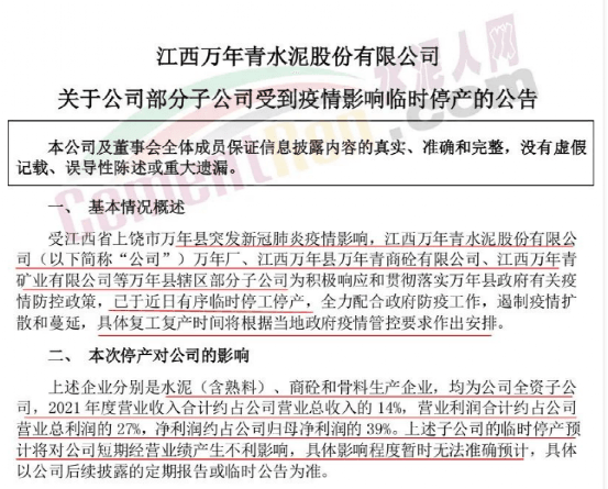 同期,上市公司萬(wàn)年青發(fā)公告稱,受疫情影響,旗下多家子公司停工停產(chǎn)。停產(chǎn)所涉及的子公司占企業(yè)2021年度營(yíng)業(yè)總收入的14%,營(yíng)業(yè)利潤(rùn)約占總營(yíng)業(yè)潤(rùn)的27%,凈利潤(rùn)約占公司歸母凈利潤(rùn)的39%。臨時(shí)停產(chǎn)將對(duì)公司短期經(jīng)營(yíng)業(yè)績(jī)產(chǎn)生不利影響,具體影響程度暫時(shí)無(wú)法準(zhǔn)確預(yù)計(jì)。