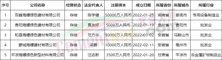 據(jù)水泥人網(wǎng)信息中心數(shù)據(jù),今年以來海螺水泥以“海螺新能源”為企業(yè)名稱注冊的企業(yè)達(dá)31家,以“海螺綠色建材”為名稱的企業(yè)5家,以“海螺控股有限公司”為名稱的區(qū)域企業(yè)3家,以“海螺光伏科技”為企業(yè)名稱的企業(yè)兩家。詳情如下: