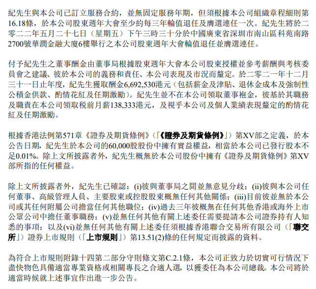 紀(jì)友紅先生:自二零一六年九月起獲委任為執(zhí)行董事及本公司總裁。彼為本公司戰(zhàn)略與投資委員會(huì)成員及授權(quán)代表。