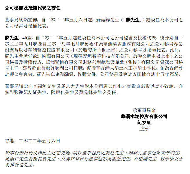 紀(jì)友紅獲委任為董事局主席、戰(zhàn)略與投資委員會(huì)主席及提名委員會(huì)主席;陳康仁獲委任為薪酬與考核委員會(huì)成員;蘇堯鋒獲委任為本公司之公司秘書(shū)及授權(quán)代表。