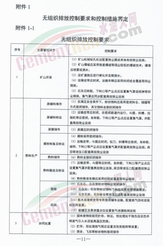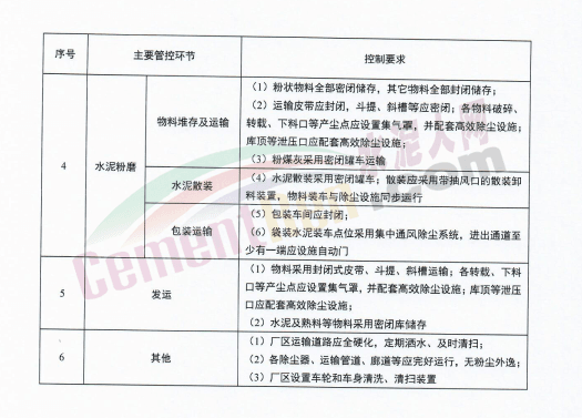 水泥行業(yè)超低排放是指對全部生產(chǎn)環(huán)節(jié)(礦山開采及輸送、原料破碎、原料預(yù)均化及儲存、原料烘干、原料配料庫、生料粉磨、生料庫、煤預(yù)均化及儲存、煤磨、熟料煅燒、熟料儲存及散裝、混合材庫、水泥粉磨、水泥儲存及散裝、水泥包裝和發(fā)運(yùn)等)的大氣污染物有組織排放、無組織排放、清潔運(yùn)輸實施全流程升級改造,完善監(jiān)測監(jiān)控設(shè)施,系統(tǒng)提升環(huán)境管理水平。具體要求如下: