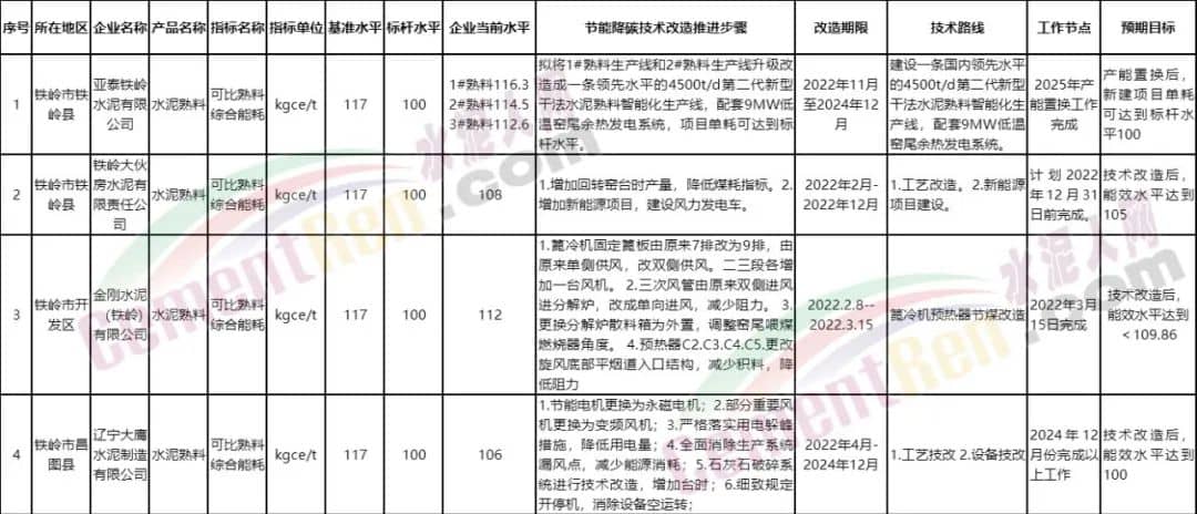 亞泰集團鐵嶺水泥有限公司建設一條4500t/d第二代新型干法水泥熟料智能化生產線,配套9MW低溫窯尾余熱發(fā)電系統(tǒng)項目,到2025年末實現企業(yè)能耗達到標桿水平。