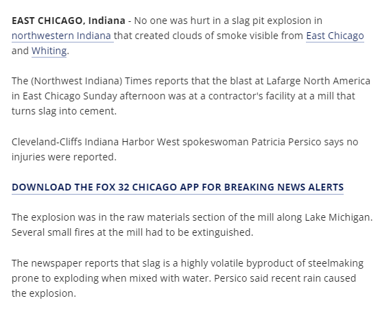 爐渣是煉鋼的一種高度揮發(fā)性的副產(chǎn)品,與水混合時容易爆炸。據(jù)Persico稱,可能是最近的降雨導(dǎo)致了這場爆炸。
