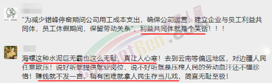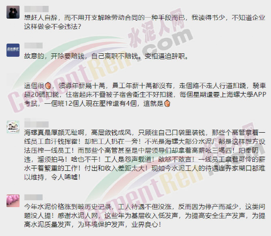云南區(qū)域海螺水泥則要求員工“集中休假,只發(fā)低保工資且要求隨時待命,不允許外出打工。”在海螺水泥是首次出現(xiàn)。據(jù)員工反饋600多元的低保工資不能保證“養(yǎng)家糊口”。
