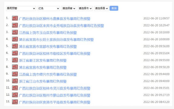 據(jù)水泥人網(wǎng)了解,20日浙江、廣西、江西、湖北等多地發(fā)布暴雨紅色預警。圖片