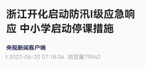 開化縣防汛防旱指揮部、突發(fā)地質(zhì)災害應急指揮部決定從6月20日6時00分將防汛應急響應提升為Ⅰ級和維持地質(zhì)災害Ⅳ級響應。根據(jù)防汛應急響應I級要求,為保障師生生命安全,全縣中小學(幼兒園)啟動停課措施,各校立即按照應急預案要求,通知家長告知學生暫緩來校并全面加強防汛安全教育和監(jiān)管。