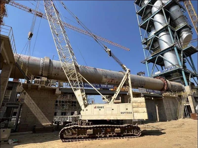 項(xiàng)目部為了確?;剞D(zhuǎn)窯吊裝作業(yè)安全順利進(jìn)行,克服了人員、機(jī)械設(shè)備進(jìn)場困難,認(rèn)真編制、反復(fù)核驗(yàn)施工方案,對(duì)參與吊裝的人員進(jìn)行專項(xiàng)培訓(xùn),對(duì)吊裝步驟、安全注意事項(xiàng)進(jìn)行了詳細(xì)交底。吊裝作業(yè)由專業(yè)起重師擔(dān)任吊裝總指揮,施工班組在作業(yè)過程中有條不紊、高效推進(jìn)。最終項(xiàng)目部安全、優(yōu)質(zhì)地完成了回轉(zhuǎn)窯筒體吊裝合龍任務(wù)。