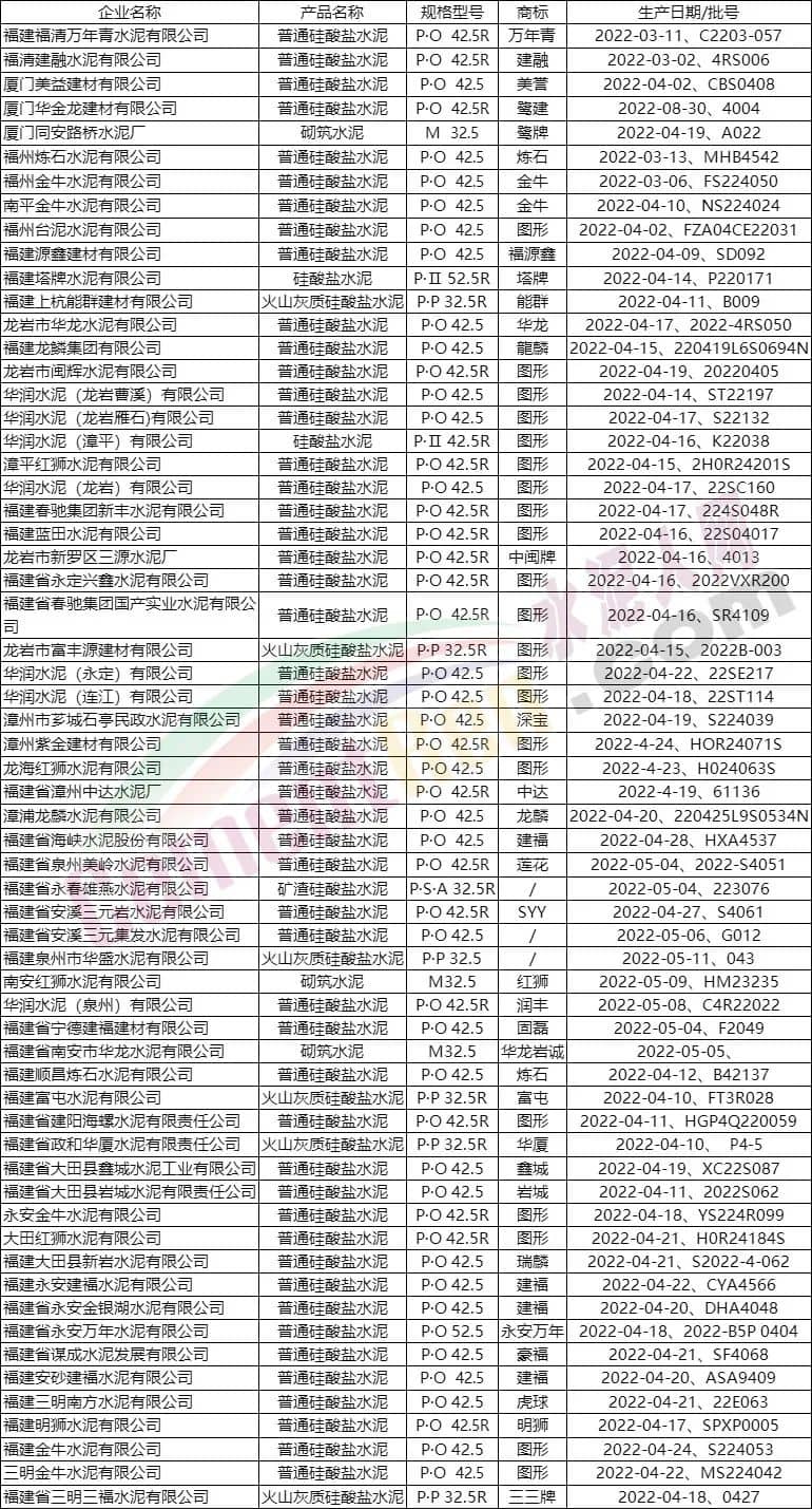 7月15日,福建省市場(chǎng)監(jiān)督管理局公布了《福建省市場(chǎng)監(jiān)督管理局工業(yè)產(chǎn)品-水泥質(zhì)量省級(jí)監(jiān)督抽查結(jié)果公告(2022年第110期)》。