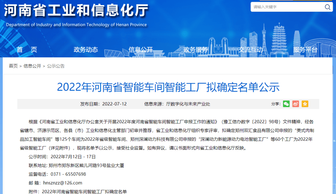 2022年河南省智能車間智能工廠擬確定名單