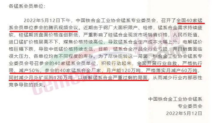 據(jù)了解,早在5月中旬,中國(guó)鐵合金工業(yè)協(xié)會(huì)錳系專業(yè)委員會(huì)就召開(kāi)了全國(guó)40家錳系會(huì)員單位參會(huì)的騰訊視頻會(huì)議。