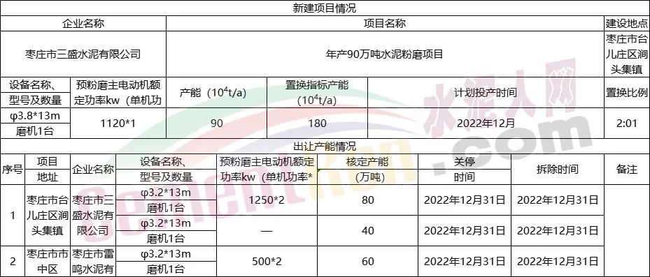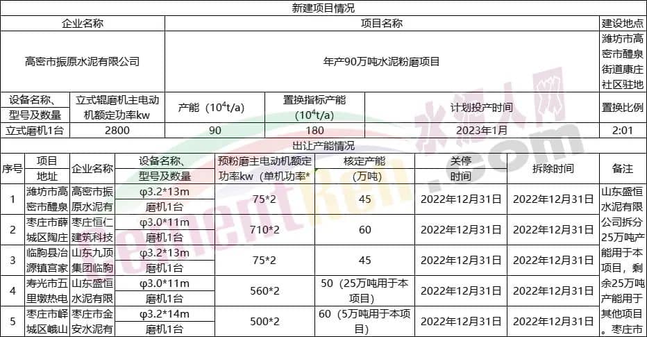 年產(chǎn)90萬(wàn)噸水泥粉磨項(xiàng)目產(chǎn)能置換情況表