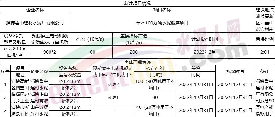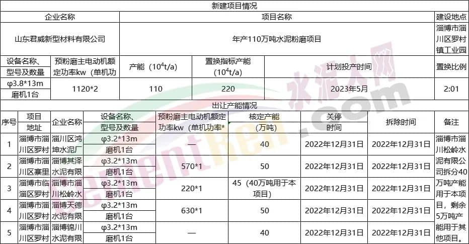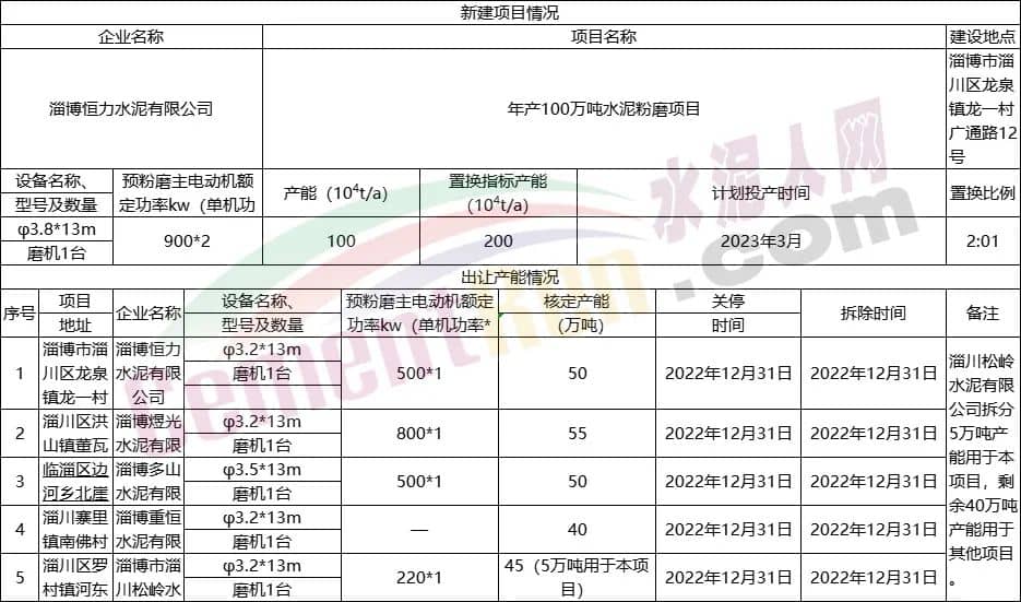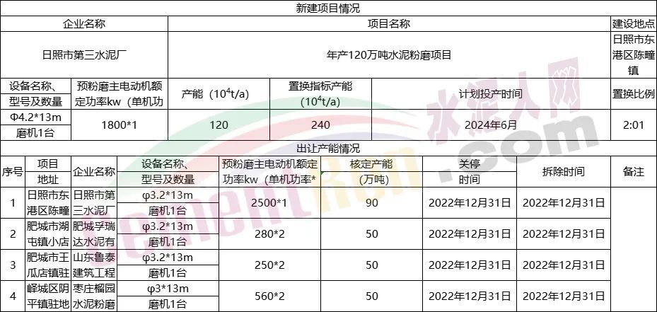 年產(chǎn)100萬(wàn)噸水泥粉磨項(xiàng)目產(chǎn)能置換情況表