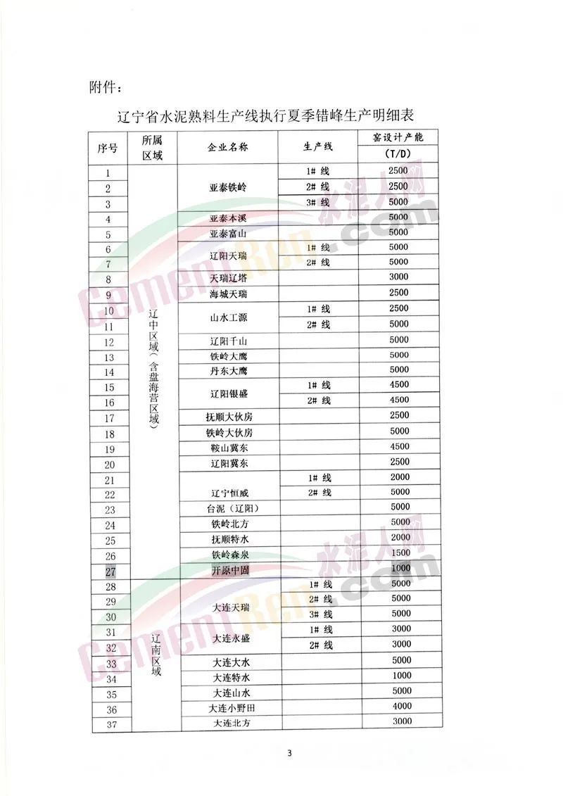 日前,遼寧省建筑材料工業(yè)協(xié)會(huì)水泥分會(huì)發(fā)布《關(guān)于遼寧省水泥熟料生產(chǎn)線8月份全面開展夏季錯(cuò)峰生產(chǎn)的通知》給省內(nèi)各水泥熟料企業(yè)稱,依據(jù)相關(guān)文件要求,結(jié)合目前遼寧省乃至泛東北整個(gè)市場(chǎng)的供需情況,經(jīng)協(xié)會(huì)研究并征求省內(nèi)重點(diǎn)水泥企業(yè)(集團(tuán))達(dá)成共識(shí),決定全省所有水泥熟料生產(chǎn)線8月份全面開展夏季錯(cuò)峰生產(chǎn)。遼中區(qū)域及盤海營區(qū)域錯(cuò)峰停窯時(shí)間:8月1日至30日,累計(jì)30天;遼南(大連)區(qū)域和遼西區(qū)域錯(cuò)峰停窯時(shí)間:8月5日至9月3日,累計(jì)30天。