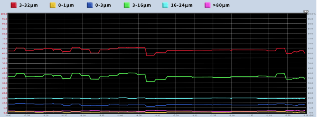 不同粒徑段含量,水泥在線檢測數(shù)據(jù)趨勢圖