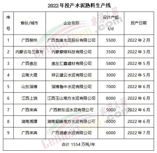 據(jù)水泥人網(wǎng)不完全統(tǒng)計,今年以來,截至七月底共投產(chǎn)水泥熟料產(chǎn)線9條,合計熟料產(chǎn)能1554萬噸。僅廣西區(qū)域就有4條水泥熟料生產(chǎn)線,熟料產(chǎn)能合計達(dá)669萬噸/年。