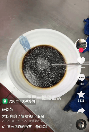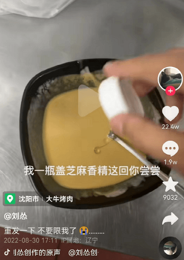 另一位“美食博主”劉慫也為大家?guī)?lái)了“科技食物”的詳細(xì)制作方法。普通的一勺花生醬,加點(diǎn)自來(lái)水,加點(diǎn)食用油,加點(diǎn)焦糖色素,加點(diǎn)芝麻香精后,一碗外面賣的芝麻醬就做好了。