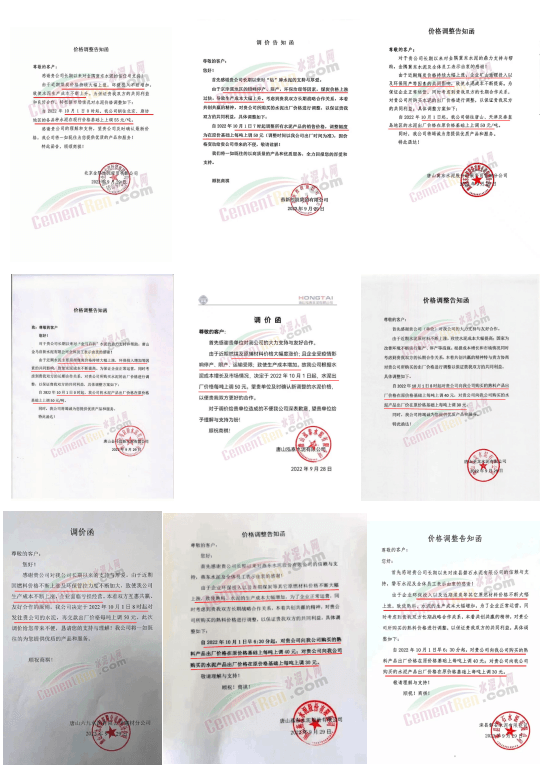 華北區(qū)域,河北省近期通知2022-2023年采暖季期間,水泥企業(yè)執(zhí)行錯峰生產(chǎn)150天,其中采暖季120天,非采暖季30天。華北京津冀主要品牌企業(yè)通知自10月1日起上調(diào)水泥價格30-55元/噸。