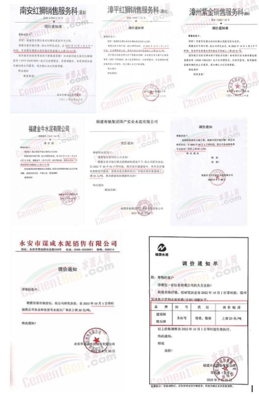 福建水泥銷售經(jīng)理通知,10月1日起所有銷售片區(qū)所有水泥品種上調(diào)20元/噸,預計10月10日將再次上調(diào)40元/噸。