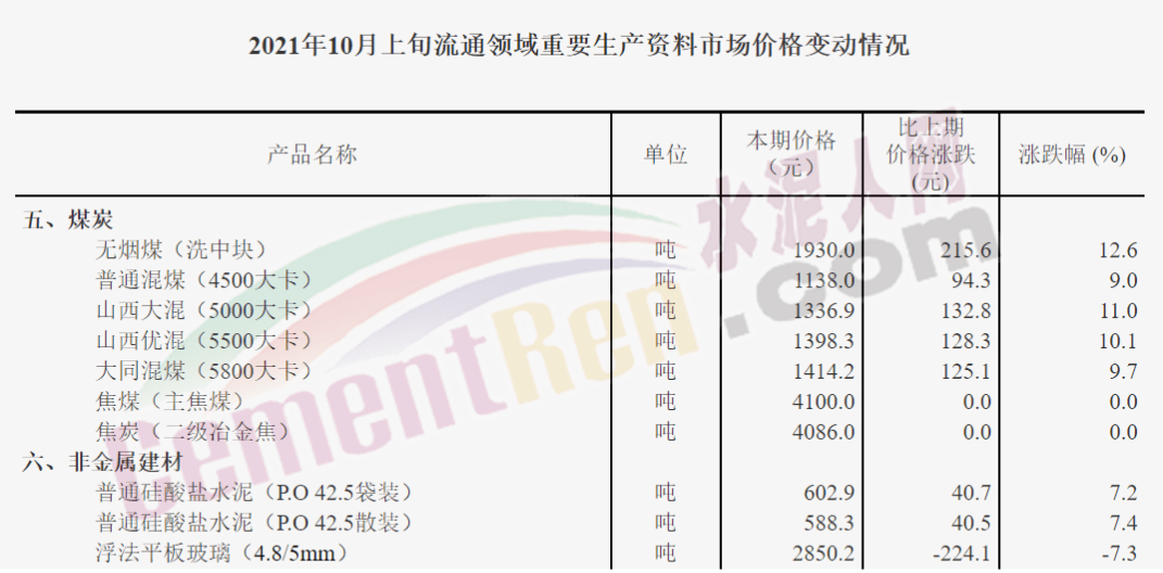 煤炭價格持續(xù)高位運(yùn)行,水泥價格同比下跌近200元/噸