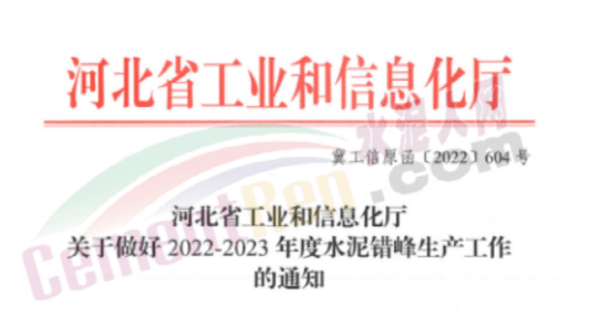河北省發(fā)布《關(guān)于做好2022-2023年度水泥錯峰生產(chǎn)工作的通知》要求水泥企業(yè)從2022年開始供暖之日至2023年開始供暖前一日,開啟采暖季錯峰生產(chǎn),全年錯峰天數(shù)共150天。其中,采暖季120天,非采暖季30天。
