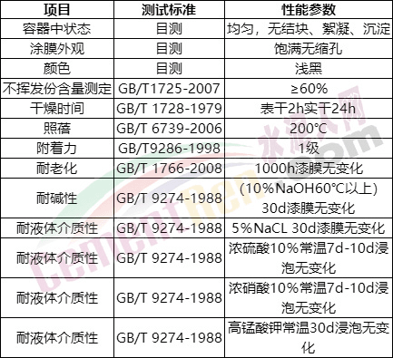 據(jù)水泥人網(wǎng)了解,目前常用的防腐材料有玻璃鱗片膠泥、玻璃鋼、不銹鋼三種,但都有易脫落、強度低、安裝難度大、成本高等缺點。經(jīng)過海螺集團、金隅冀東集團、華潤水泥、臺泥水泥、塔牌水泥、中建材集團等多家集團性企業(yè)的多方考察調(diào)研,最終在收塵器、窯尾鋼制煙囪的防腐方面,選擇了西安中建盛唐環(huán)保科技有限公司(以下簡稱“西安中建盛唐”)的“鈦盾牌”防腐產(chǎn)品石墨烯防腐涂料。該涂料的基本性質(zhì)和涂膜性能如下圖所示。