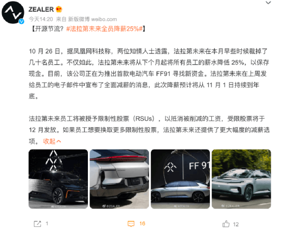 即使是一片火熱的新能源汽車也未能獨善其身,賈躍亭旗下的新能源汽車公司法拉第未來由于受到美股、匯率等因素波動,導(dǎo)致其現(xiàn)金流出現(xiàn)了問題。該公司已經(jīng)通過郵件向全員通知全員降薪25%,以維持公司日常所需現(xiàn)金流。