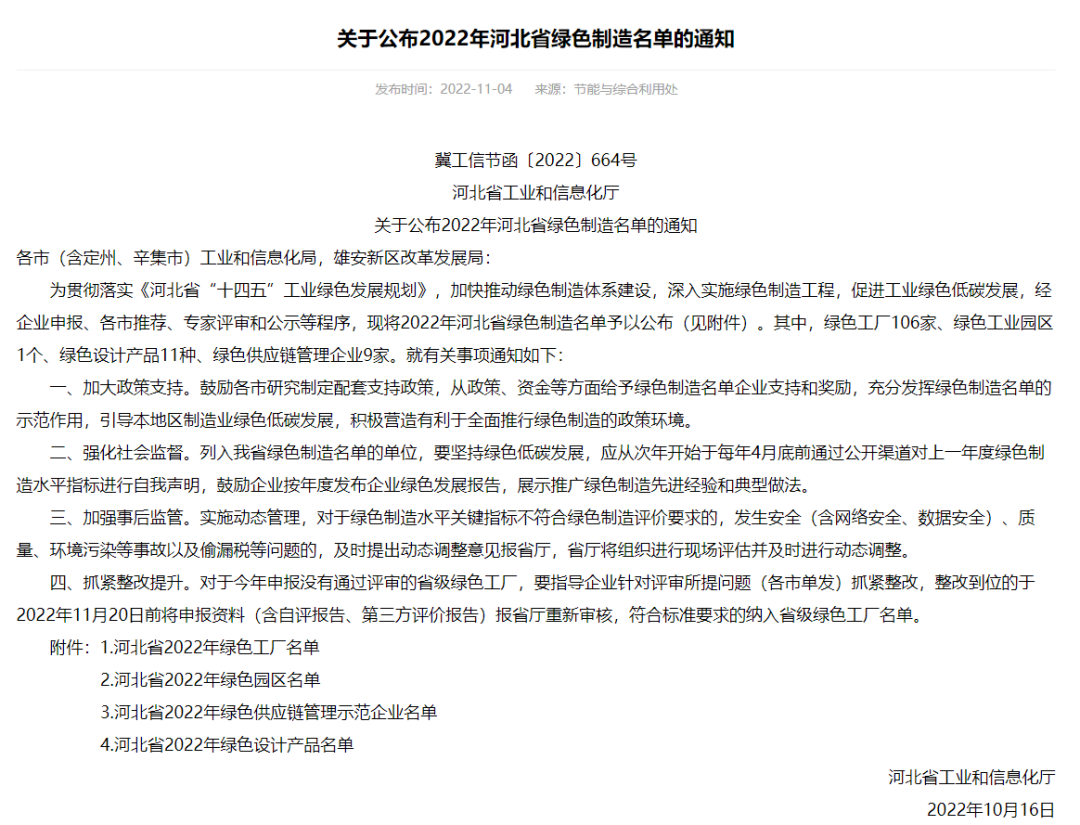 2022年河北省綠色供應(yīng)鏈管理企業(yè)名單中包含贊皇金隅水泥有限公司、唐山冀東水泥三友有限公司、唐山冀東水泥股份有限公司唐山分公司、曲陽金隅水泥有限公司、保定太行和益環(huán)保科技有限公司等5家水泥企業(yè)。