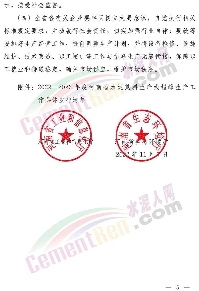 日前,河南工信廳、生態(tài)環(huán)境廳聯(lián)合發(fā)布《關(guān)于實施2022—2023年度全省水泥行業(yè)錯峰生產(chǎn)工作的通知》要求河南省內(nèi)所有水泥熟料生產(chǎn)線(不含水泥粉磨工序和粉磨站)自2022年11月15日至2023年3月15日采暖期期間,實施錯峰停產(chǎn)。