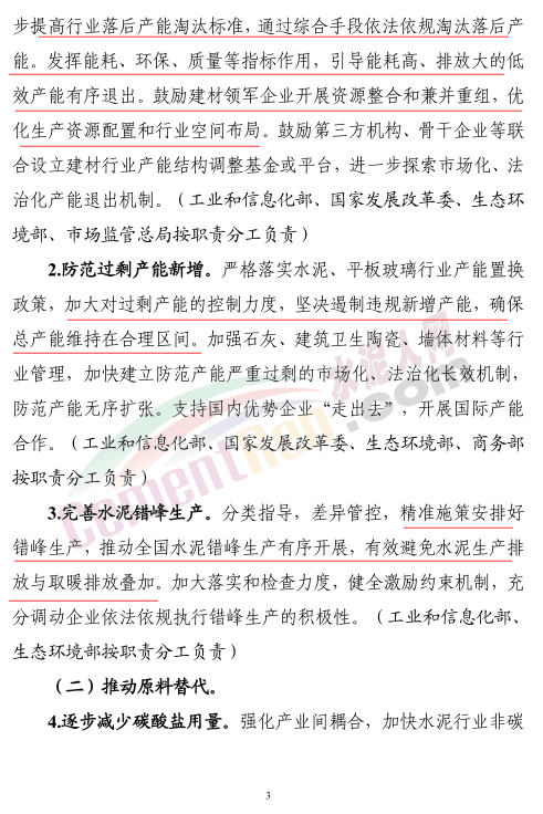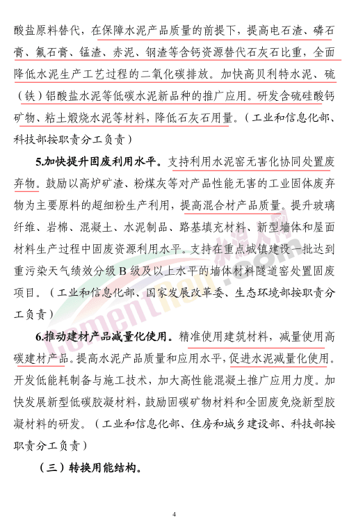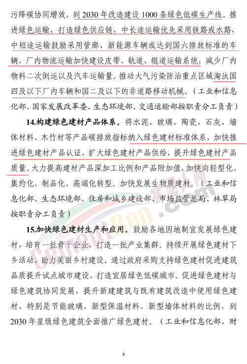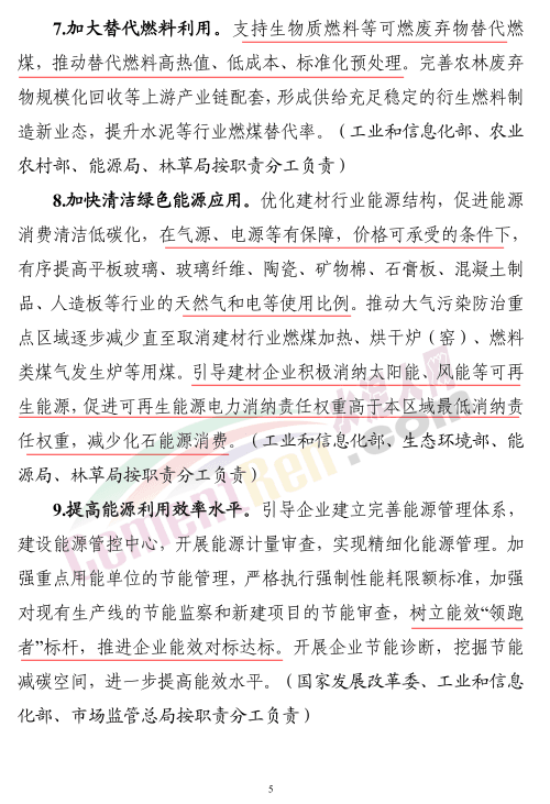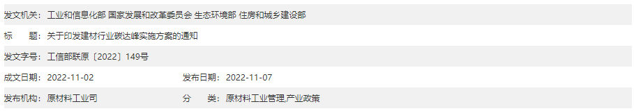 工業(yè)和信息化部、國家發(fā)展和改革委員會、生態(tài)環(huán)境部、住房和城鄉(xiāng)建設(shè)部等四部門聯(lián)合印發(fā)《建材行業(yè)碳達(dá)峰實施方案》,方案提出“十四五”期間,建材產(chǎn)業(yè)結(jié)構(gòu)調(diào)整取得明顯進(jìn)展,行業(yè)節(jié)能低碳技術(shù)持續(xù)推廣,水泥、玻璃、陶瓷等重點產(chǎn)品單位能耗、碳排放強(qiáng)度不斷下降,水泥熟料單位產(chǎn)品綜合能耗水平降低3%以上。“十五五”期間,建材行業(yè)綠色低碳關(guān)鍵技術(shù)產(chǎn)業(yè)化實現(xiàn)重大突破,原燃料替代水平大幅提高,基本建立綠色低碳循環(huán)發(fā)展的產(chǎn)業(yè)體系。確保2030年前建材行業(yè)實現(xiàn)碳達(dá)峰。