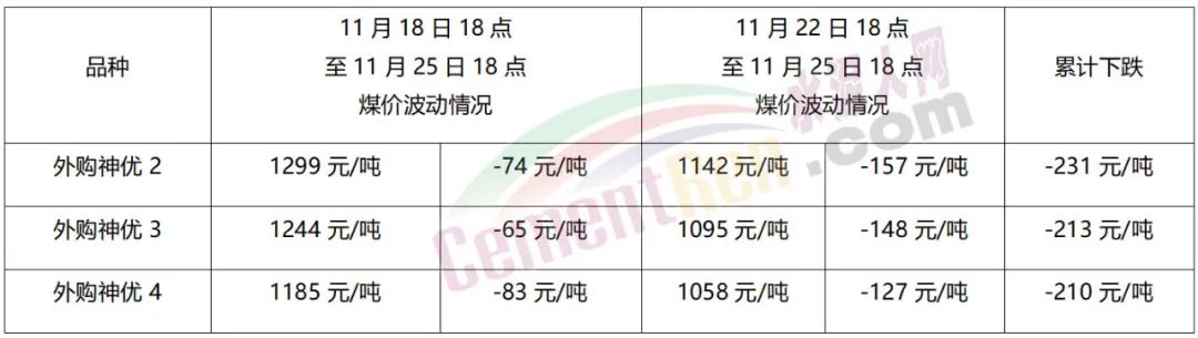 此前國家統(tǒng)計局發(fā)布的流通領域煤價波動數(shù)據(jù)顯示山西優(yōu)混5500大卡煤價報1555.7元/噸,較11月上旬下跌28.1元/噸。由此也可見自11月中旬開始煤價跌幅在擴大。
