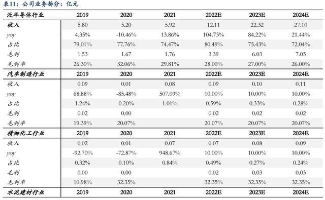 占總收入比重較小,假設(shè)鋼鐵行業(yè)2022-2024年收入增速為0%/-15%/-15%,假設(shè)碳素行業(yè)2022-2024年收入增速為10%/10%/10%,假設(shè)汽車(chē)制造、精細(xì)化工及其他行業(yè)2022-2024年收入增速維持10%左右增速,毛利率與過(guò)去三年趨勢(shì)保持一致