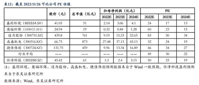 我們選取半導(dǎo)體領(lǐng)域尾氣設(shè)備領(lǐng)先公司盛劍環(huán)境、國(guó)內(nèi)蜂窩陶瓷載體龍頭奧福環(huán)保以及光伏設(shè)備頭部公司邁為股份、晶盛機(jī)電、捷佳偉創(chuàng)作為可比公司,公司作為光伏配套尾氣治理設(shè)備龍頭,2023-2024年估值較可比公司具備提升空間。