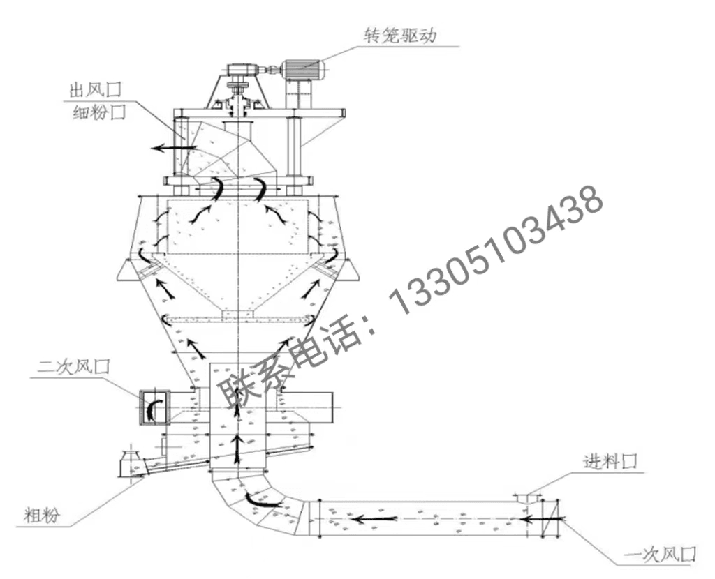 該選粉機(jī)突破了原有超細(xì)分級(jí)機(jī)生產(chǎn)能力小、選粉效率低,比表面積難于提高、微細(xì)粉宜團(tuán)聚難于分散等多項(xiàng)技術(shù)瓶頸,解決了超細(xì)分級(jí)設(shè)備無(wú)法實(shí)現(xiàn)大規(guī)模分選超細(xì)微粉的關(guān)鍵技術(shù)難題。該選粉機(jī)分級(jí)精度準(zhǔn),選粉效率高,選粉效率平均值達(dá)到80.6%。在高選粉效率的情況下,保證適中的循環(huán)負(fù)荷(120%),以保證物料在超細(xì)球磨機(jī)內(nèi)能夠得到充分的研磨,可根據(jù)用戶(hù)需要生產(chǎn)比表在700~1000m2/kg的超細(xì)微粉。