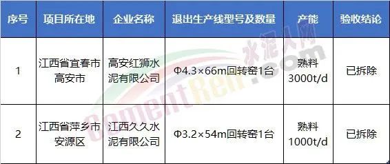 10月31日江西省工信廳公告:江西大圣水泥有限責(zé)任公司333t/d水泥熟料生產(chǎn)線已拆除。
