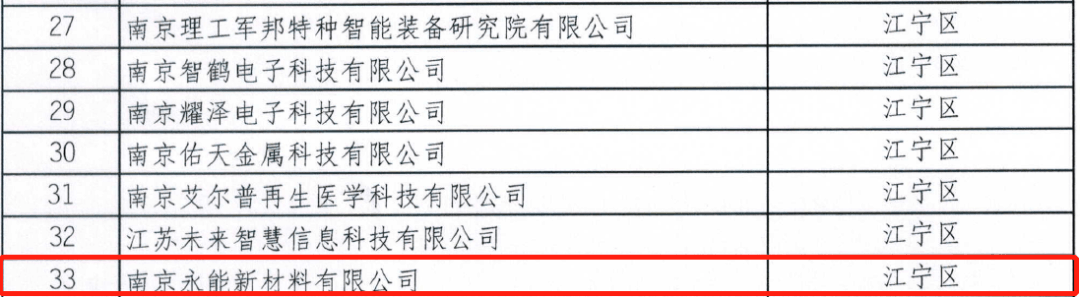 南京永能新材料入選