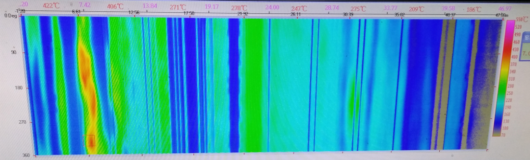 圖5 HJ節(jié)能燃燒器窯筒體溫度分布2