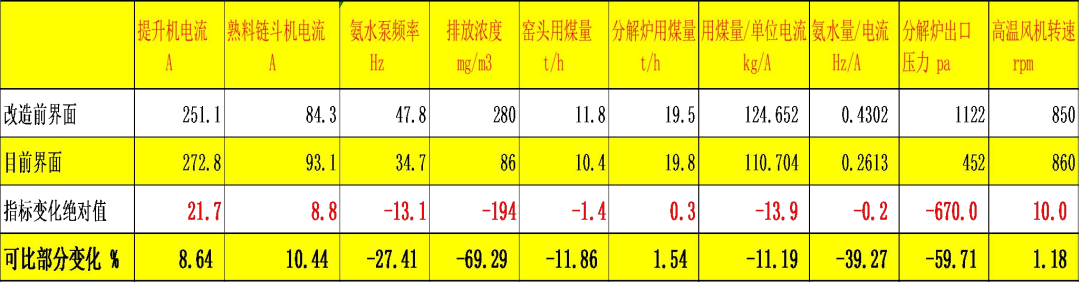 目前系統(tǒng)運(yùn)行穩(wěn)定:NOx 排放濃度從原來控制 300mg/m3 以下,降低到100mg/m3以下;在降低排放濃度的同時(shí),氨水用量比之前降低了 27.4%;熱耗比之前降低了 11.19%;余熱發(fā)電量也有所增加。系統(tǒng)產(chǎn)量遠(yuǎn)遠(yuǎn)超過該廠建廠以來的歷史最高水平。