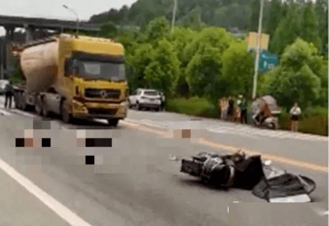 陜西漢中水泥罐車與兩輪電動車相撞,導致3死1傷