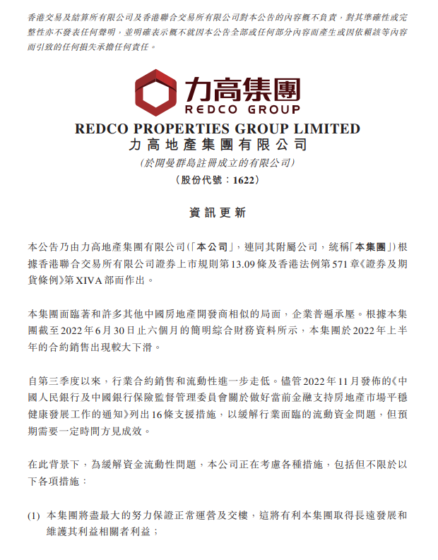 另一家,多年位列中國(guó)地產(chǎn)TOP100的力高集團(tuán),也在2022年的最后一個(gè)工作日發(fā)布公告,鑒于流動(dòng)資金有壓力,將暫停境外債務(wù)付款。公司將盡最大的努力保證正常運(yùn)營(yíng)及交樓。