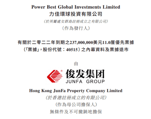 2022年12月底“云南王”俊發(fā)集團(tuán)公告稱無(wú)法按期償付2022年12月24日到期的2.37億美元11厘優(yōu)先票據(jù)。